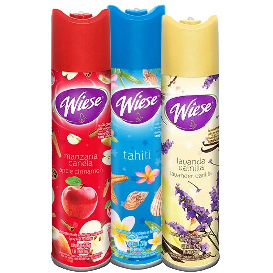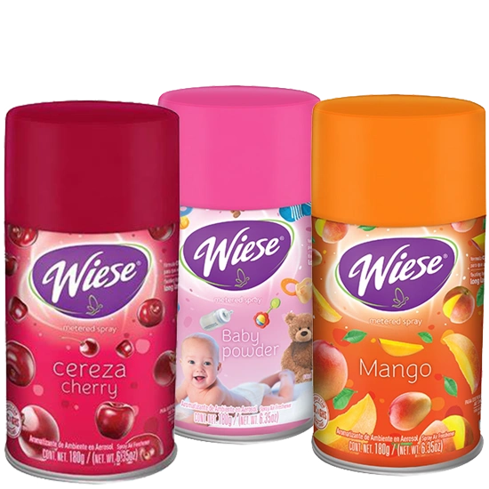 Aromas: Baby powder, bosque, Brissé, Canela, Cereza, Cítrico, Clean Air Lavanda, Eliminador de Olores, Fresa, Lavanda, Hawaian ginger, Frutas rojas, Limón, Mango, Manzana Canela Manzana Verde, Melón, Menta, Naranja, Ocean Mist, Piña Colada, Red Clover, Sand Tahití, vainilla